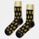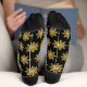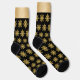 Add a touch of bling to your wardrobe with this Golden Snowflake pattern. This glitzy design features a repeating pattern of gold color snowflakes on a black background. For additional bling, the top of both socks has a gold color band.