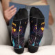 L'imprimé sur ces chaussettes incarne l'esprit d'Halloween : une forêt dense où les yeux des créatures mystérieuses brillent, des chauves-souris chatoyantes dans le ciel, et, bien sûr, des citrouilles dans toute leur gloire automnale. Les couleurs vives orange, violet et noir créent une impression de magie et de plaisir. Avec ces chaussettes, vous apportez une part de plaisir et de mystère dans la vie quotidienne. Ils sont parfaits pour mettre en valeur votre amour pour Halloween et créer un look unique pour ce jour férié spécial. Ces chaussettes sont non seulement un accessoire élégant, mais aussi un grand cadeau pour votre famille et vos amis.