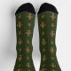 Un motif de pains d'épices à l'allure de dessins animés avec tous les ornements classiques, y compris les boutons de goutte et les détails de givrage, décore un arrière - plan vert de forêt pour créer une paire de chaussettes amusante et ludique pour la saison de Noël.
