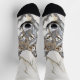 Illustration gris-brun de la tête d'un loup sur un fond beige marbre
