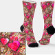 Chaussettes Pretty Pink Hearts & Raffia Flowers - - Les images sont mises en miroir pour la symétrie lors du port - - voir plus de superbes modèles de chaussettes dans mon magasin.