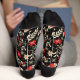 Motif de Noël avec baies rouges et fleurs blanches sur arrière - plan noir.