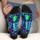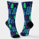 Arbres de Noël verts, bleus et turquoise avec neige jaune et rouge sur un arrière - plan bleu foncé.