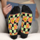 Design motif rétro vert et noir avec fleurs souriantes. Idéal pour les fêtes et pour la décoration à la maison.