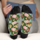 Chaussettes de Noël personnalisées d'inspiration vintage créées à l'aide d'ornements fantaisistes dessinés à la main sur un arrière - plan vert profond. Parfait pour porter toute la saison. Art original de Leslie Larson,