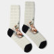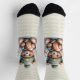 Les chaussettes personnalisées ont un thème de football avec une touche féminine. Design moderne avec des fleurs et un ours mignon tenant un football. Écru arrière - plan. Customisez le texte sur les chaussettes avec le nom ou la phrase que vous souhaitez. Idéal pour les amateurs de football. Utilisez le modèle pour créer vos propres chaussettes personnalisées.