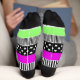 Patchwork de rayures noir et blanc et néon avec pourpre et tissu vert