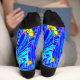 Ce design présente un arrière - plan bleu foncé avec des tourbillons bleu clair et des pièces jaunes