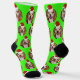Ces adorables chaussettes de Noël vert néon, mignonnes et personnalisées, portent des chapeaux de Noël rouges et blancs sur la tête de votre animal de compagnie et votre propre chien, chat ou autre photo de bébé en fourrure dans un motif décalé, et sont les chaussettes parfaites pour mettre vos animaux de compagnie pendant la saison des fêtes ! C'est un grand cadeau pour les amoureux de la bête ou de la chaussette, quelqu'un qui creuse des couleurs rétro néon, et est parfait pour ramasser le Vendredi noir et comme un rembourrage de Noël. La couleur Arrière - plan est également personnalisable.