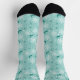 Ces jolies chaussettes de vacances ont un motif turquoise et blanc de rennes bondissants, de flocons de neige et de confettis. Votre monogramme en blanc est sur une bannière de cercle turquoise assortie à l'extérieur de chaque chaussette.