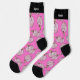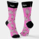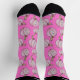 Chaussettes de nouveauté personnalisées de pêche à la Whimsical créées à l'aide de pêches à l'aquarelle dessinées à la main sur un arrière - plan rose vif. Visitez mon magasin pour plus de produits motifs de fruits amusants. Art original de Leslie Larson.