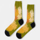 Fashionable sunflower women's socks with green background.