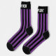 Complétez votre tour ou traitez votre tenue d'Halloween avec ces chaussettes sortantes rayées violet et noir. Le texte situé en haut de chaque chaussette peut être modifié indépendamment, de sorte que vous pouvez ajouter du texte différent à chaque chaussette si nécessaire