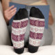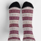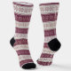 Ces jolies chaussettes de vacances en faux tricot ont un motif de flocons de style lavande rétro de différentes tailles. Les flocons de neige sont placés sur des bandes larges et violettes foncées alternant, avec des bandes fines séparant les segments. Plutôt pour la saison de Noël ou tout l'hiver ! *Veuillez noter que le motif est imprimé sur le tissu, et non pas vraiment tissé dedans.