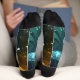 Vol de libellules brillantes, vertes, artistiquement dessinées avec des ailes vertes et jaunes transparentes sur arrière - plan de nuit brillant avec des plantes de marais et des lucioles. libellule éclatante.