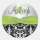 Ce collier d'autocollant et d'enveloppe de Sweet sixteen damassé de 1,5 po vert, argent et noir correspond à l'invitation. Customisez avec votre propre texte. D'autres formes et tailles sont également disponibles.