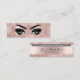 Cheap but eyecatching fabulous Makeup Artist Eyelash Lashes design with script calligraphy text, glam rosegold pink glitters and eye-catching sleek background Business Card, with woman eyes illustration. Custom this feminine business card design adding your own logo, your name, your profession, choose your own script font, change or delete any element and you'll have an amazing tool for attract clients and grow your business.