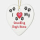 Personalized, I Love My GrandDog Ornament, or YOUR TEXT. Type in Your GrandDog's NAME or Change all the Text to your message. Select other I love my granddog ornament shapes. Ceramic or Acrylic. CALL Designer Linda: 239-949-9090 EST to make Design, Text, Photo Templates, Colours or Transfer to your choice of THOUSANDS of other Super Cute Cheap I Heart My GrandDog Gifts.
