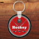 Cheap Red and Black and White Personalized Hockey Keychains for boys or girls or Your COLORS and TEXT. Choose these cheap hockey gifts button style keychains or the Premium Hockey keychains. You, or CALL Designer Linda: 239-949-9090 to CHANGE the Red and White Background and Text Colours. Designer Linda can also Change the Black Circle Printed Frame Border COLORS, along with all Colours, create a Different Product or change the Design.