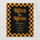 Raise your spirits (literally) this October with the ultimate "Boos and Booze" Halloween Party Invitation. If you’re planning a night of cocktails, costumes, and good times, this invite sets the perfect tone for a grown-up gathering that doesn't take itself too seriously. This design is all about that trendy, retro aesthetic. The background features a bold orange and black checkered pattern, giving off a cool vintage vibe that stands out from the typical spooky clipart. Front and center is the main event: the cheeky quote "Boos And Booze," rendered in a unique decorative retro font with a playful bone style finish. It tells your guests exactly what to expect, a night of hauntingly good drinks and great company.