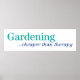 The Gardening. . . . Better than Therapy design is perfect for the gardener in your life. Birds & Blooms is the #1 bird and garden magazine in North America. We pride ourselves in celebrating the “beauty in your own backyard” cover a wide range of topics such as bird watching, attracting hummingbirds, building birdhouses, gardening for butterflies, feeding birds for less, growing veggies, tales of readers’ birding experiences, plus a whole lot more. We realize that gardeners and birders often share the same interests. It makes sense—if you want to attract birds to your backyard, gardening and landscaping are a great way to do it. And when a garden’s in bloom, adding the movement of colorful birds and their cheery songs makes a backyard come alive. Visit www.birdsandblooms.com/zazzle to see more!