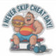 Who says you can’t mix cardio with carbs? Meet the happiest gym-goer in the world — cheerfully perched on a workout bench, proudly clutching a mega-sized burger like it’s the real prize of leg day. Dressed in bold blue shorts and a red tank top, this round, radiant character glistens with post-workout (or pre-burger?) sweat, flanked by forgotten dumbbells and zero regrets. Framed by the triumphant phrase "I Never Skip Cheat Day!", this vibrant vector cartoon brings the perfect blend of humor, irony, and appetite to any fitness enthusiast’s wardrobe. 🏋️♂️🍟😂