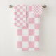 Check Baby Pink And White Chequerboard Pattern Bath Towel Set