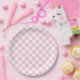 Check Baby Pink And White Chequerboard Pattern Paper Plate