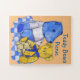 This cheerful still life teddy bear picture is painted in watercolor. The three cute teddies are sitting on a blue and white check picnic cloth. The three little bears are from my own teddy bear collection, the blue bears name is "Charlie bear" the bigger yellow bear is called "small Barbara Bear" and the little teddy.... well...I didn’t have a name for him, but I do remember that he only had one eye. The cute still life teddy bear watercolor painting is a unique picture and definitely stands out. If you're looking for a unique gift for tedd lovers from nought to one hundred then this item will defiantly do the job. This is a jigsaw for the very young and can be customized with your own text.