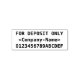 This simple rubber stamp design features the message "FOR DEPOSIT ONLY", along with a custom personal/business name and account number. It could be used by a clerical worker, an office clerical worker or an individual to efficiently add a restrictive endorsement to a check.