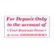 This basic rubber stamp design features the message "For Deposit Only to the account of", plus a customizable name and account number. It could be used by an accounting professional, a clerical worker or a financial clerk to efficiently add a restrictive indorsement to a check.