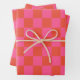 Checkerboard Checkered Pattern in Pink and Orange Wrapping Paper Sheets