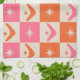 Checkered Mid Century Boomerangs pink and orange Kitchen Towel