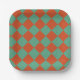 Checkered Orange & Green Retro Chic Birthday Party Paper Plate