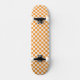 This quality made skateboard is shown in a orange and white checkered print.