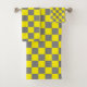 Abstract digital art of yellow and charcoal grey squares in a checkered formes.