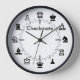 An elegant and simple chess inspired wall clock with graphic chess pieces representing the hour markers and chequered pattern indicating the minutes on a clean white background. The customizable text makes this time piece a great personalized gift idea for the chess playing enthusiast.