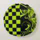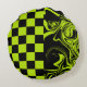 Checks and Swirls - Lime Green and Black Round Pillow