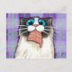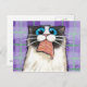 Whimsical cat art postcard. Mozart the ragdoll cat loves eating salmon! © 2008 Lisa Marie Robinson.
