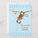 Cheeky Monkey Blue Stripes 1st Birthday Party Invitation