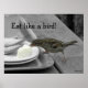 A cheeky sparrow helps himself to cream left on a plate at teatime!