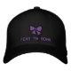 Fits well due to elastic edging, not adjustable. Good qualty material. Good quality embroidering. Subtle lettering (white on beige) just as my wife likes.