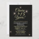 You're invited to celebrate 15 years of love and memories! Join us for an unforgettable evening as we raise a glass and say "Cheers to 15 years!" An elegant night awaits you with modern gold details on a sleek black background, symbolizing the timelessness of our journey together.