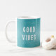 Distressed white “Good Vibes” text on a textured blue ink background. Other colours and products available in my store.