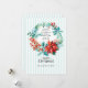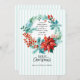 A pin stripe background sets the scene for a gorgeous wreath of pine, berries and poinsettia flowers. <br/><br/>The card is easy to customize with your wording, font, font colour and choice of six paper types.<br/><br/>Not exactly what you're looking for? All our products can be custom designed to meet your needs at no extra charge.<br/><br/>Simply contact us at heartfelthelper@gmail.com<br/><br/>Coordinating products available: