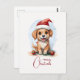 Cheerful Christmas Dog with Santa Hat and Ornament Postcard