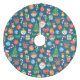 Cheerful Christmas Pattern on Blue Fleece Tree Skirt