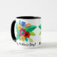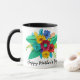 Cheerful Cut Paper Bouquet Mug - This cheerful mug features a vibrant and colourful paper flower bouquet, created using the art of origami and papercraft created by artificial intelligence. The intricate design showcases a beautiful arrangement of multicolored flowers and tropical leaves, reminiscent of a handmade paper craft. The nature-inspired design is a perfect blend of modern botanical and artistic paper sculpture, making it a unique and eye-catching addition to any room. Perfect for anyone who loves creative and decorative designs, this mug is a lovely way to enjoy your favourite beverages. The text says "Happy Mother's Day" but may be removed or edited as desired.