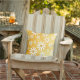Daisies pattern outdoor throw pillow with multiple patterns and lots of daisies, playing together on a digitally distressed but still bright and sunny golden background by katz_d_zynes