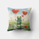 Cheerful frog red balloons throw pillow